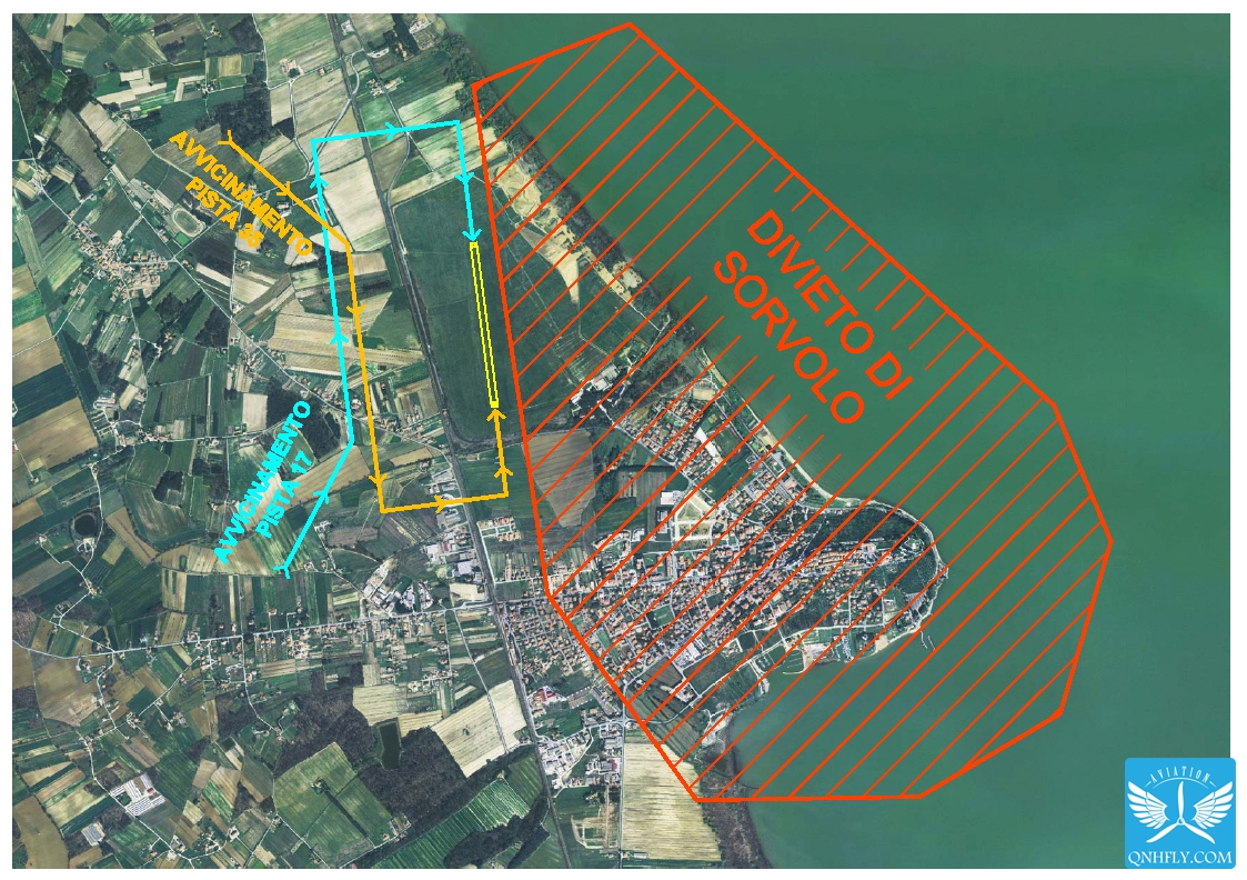 Si prega di rispettare i circuiti di traffico indicati e la NO FLY ZONE indicata sulla cartina. Evitare tassativamente il sorvolo delle rive del lago e del centro abitato. |